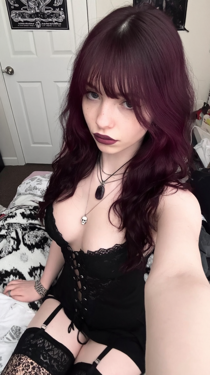 heavy makeup with winged eyeliner and glossy lips,natural makeup with visible freckles,pensive expression,slight smile with direct gaze,face obscured by hair.Be Specific with Attire: The LoRa is trained on specific fashion subcultures. Use keywords that evoke them.
