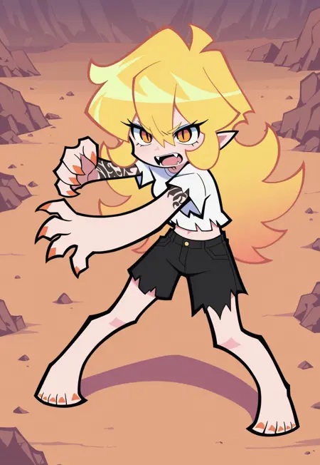 Also I tried to make it in a way that you can push the arm/leg style. Since the dataset included background characters and ofc Garter, the body types vary much and in a test run the outcome was random. So if you want the arms/legs more like our main characters add chibi as a tag. You can see the difference in picture 1 (with chibi) and picture 2 (without).