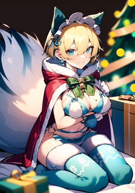 PS: 이 모델을 캐릭터 LoRA로 사용할 수 있습니다. 추천 프롬프트: christmas detective-hairstyle, outfit-christmas detective, red cape, 1girl, animal ears, cleavage, blonde hair, solo, mole under eye, short hair, blue eyes, tail, christmas tree, gift, christmas, blush, fake animal ears, gift box, earrings, smile, sitting, box, bangs