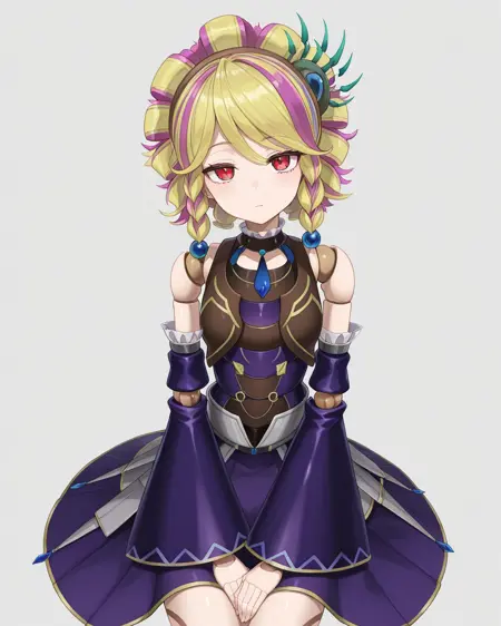 el shaddoll wendigo, multicolored hair, red eyes, doll joints