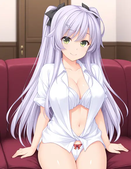 아우트핏03, 셔츠, 칼라 셔츠, 여는 셔츠, 앞쪽 매듭 셔츠, 흰색 셔츠, 단소매, 소매 올린, 속옷, 흰색 속옷, 팬티, 활 모양 팬티, 투명한 젖꼭지