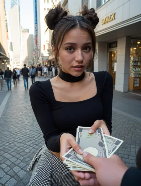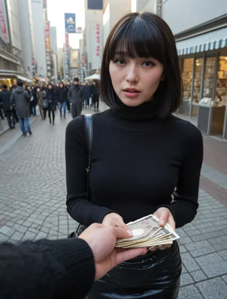 시청자는 여자에게 제공된 서비스에 대한 현금을 제안한다.