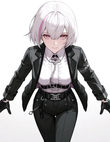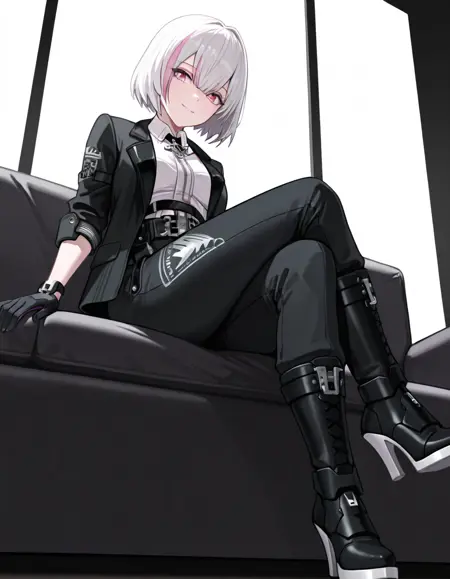 Agent Peacock, AP_jacket, AP_sleeveless_shirt, single glove, AP_gloves, AP_high_heel_boots, AP_leather_pants, AP_belt