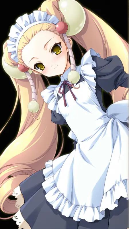 외모: 금발, 긴 머리, 트윈테일, 매우 긴 머리, 뒤로 빗어 올린 머리, 노란 눈, 머리 장식, 드릴 머리, 머리 띠, 평평한 가슴,