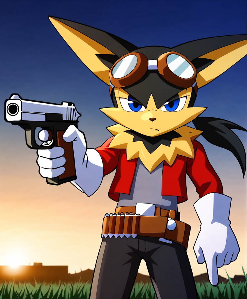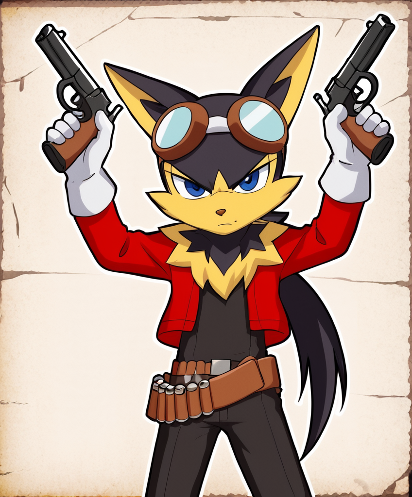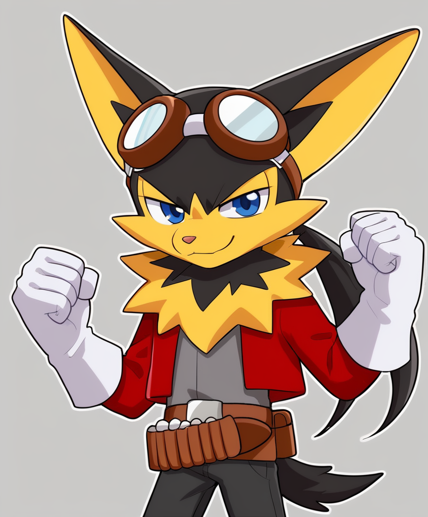 | 학습된 단어 | guntz, blue eyes, shirt, long sleeves, 1boy, gloves, animal ears, closed mouth,jacket, tail, ponytail, open clothes, pants, belt,white gloves,dark grey shirt, open jacket, v-shaped eyebrows, black pants,cropped jacket, goggles on head,furry, goggles, eyewear on head, red jacket, body fur,fur below the neck,,animal nose, two-tone fur, yellow fur, black fur복사됨! |