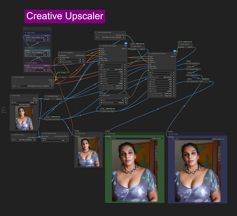 흐릿하고 해상도가 낮은 이미지에 지치셨나요? 이 ComfyUI 워크플로우가 당신의 비밀 무기입니다! 저는 이 설정을 수 시간 동안 다듬어, 단순히 이미지를 놀라운 4MP 해상도로 업스케일할 뿐만 아니라 놀라운 디테일과 전문적인 외관으로 향상시켰습니다. 이는 단순한 업스케일러가 아니라 품질 향상 도구입니다.