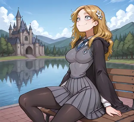 该模型力求忠实于原著中对她的外貌描述:拥有一头长长的污金色长发和巨大的银灰色眼睛。