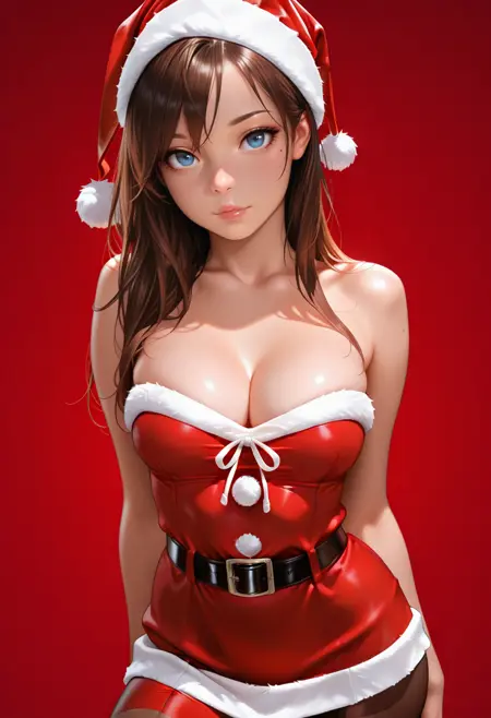PONY 版本:christmassexyoutfit, 1girl, solo, long hair, brown hair, hat, christmas, santa hat, santa costume