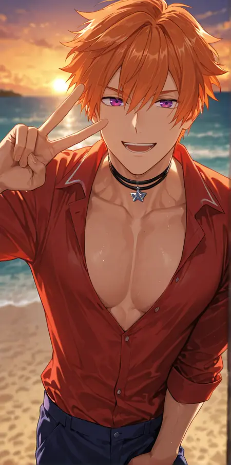 트리거 단어: 벨제부브, 주황색 머리, 단발, 보라색 눈