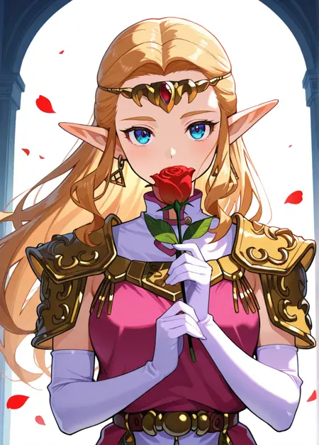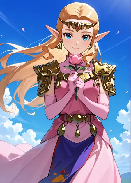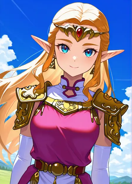 zeldaxd, 금발, 긴 머리, 옆머리, 파란 눈, 뾰족한 귀, 금관, 귀걸이,