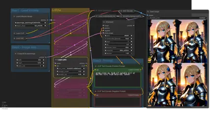 LoRA 강도는 CFG 스케일 등과 함께 조정하세요. 병합 사용 시 총합이 1.0이 되어야 한다는 제한은 없습니다. 일부 경우 개별적으로 1.5 이상의 값을 사용하는 것이 더 효과적일 수 있습니다. 일반적으로 CFG 스케일이 높을 경우 LoRA 강도를 낮추어 조정하세요.