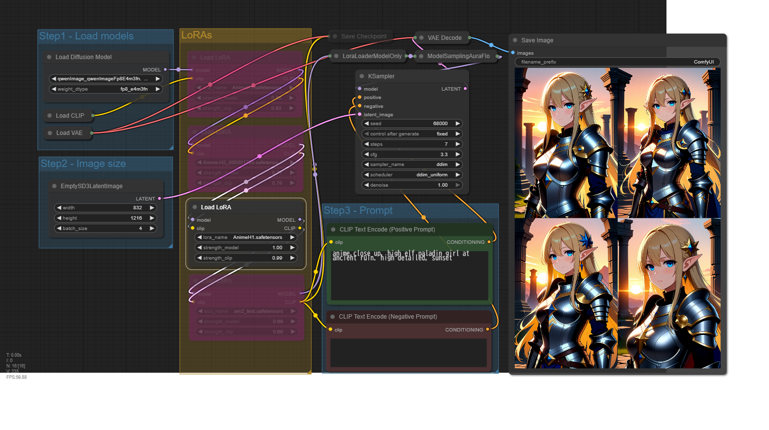 これらはQwen-image用のアニメスタイルLoRAです。Qwen用のLoRA作成に不慣れであり、トレーニングに要する時間も長く、予想より効果が低かったため、画像のスタイルに応じて複数のLoRAに分割し、組み合わせて使用することを意図しています。