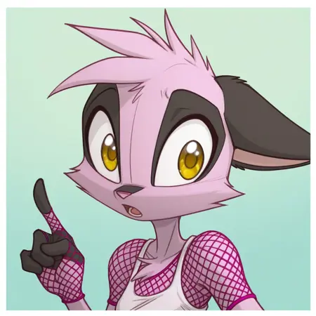 prelude_vi_dk, solo, 1girl, furry, furry female, animal ears, yellow eyes, brown eyes, tail, body fur, animal nose, animal ears, short hair, two-tone fur, pink hair, pink fur, snout