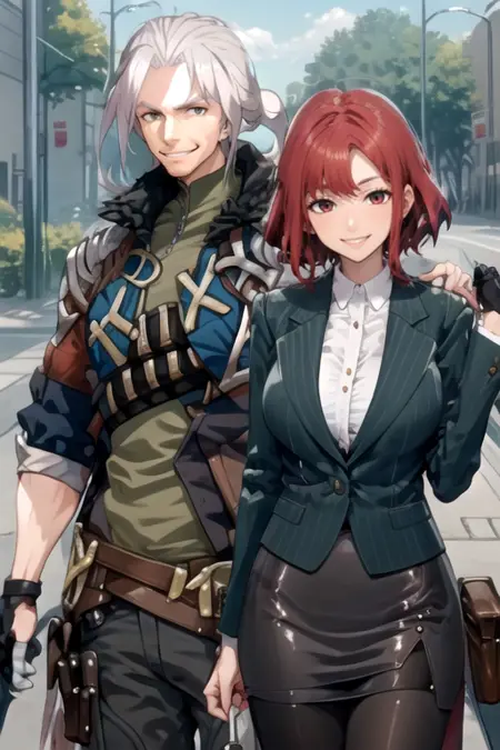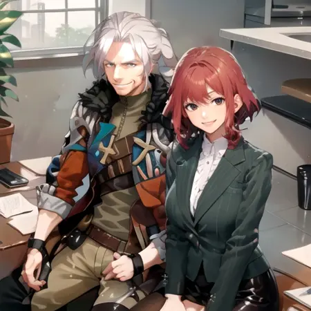 SiegfriedSouko, a man and a woman, hetero, standing, smile, cowboy shot