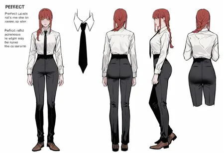 オフィスの服装: ネクタイ、黒ネクタイ、胸、中程度の胸、スーツ、ビジネススーツ、シャツ、フォーマル、白シャツ、シャツの襟、シャツをインナーに入れる、長袖、ズボン、黒ズボン、ハイウエストパンツ、靴、茶色の靴、オフィスレディ