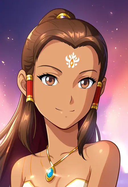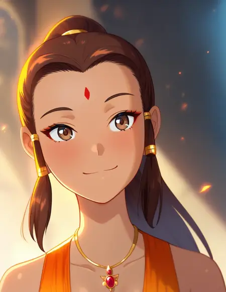| 训练词汇 | breasts, small breasts, cleavage, curvy, bangs, blunt bangs, long hair, ponytail, brown hair, brown eyes, hair tubes, red facial mark, red forehead mark, light tan skin, necklace, light tan-skinned female, sidelocks已复制! blue traditional ancient beauty clothing已复制! skirt,shirt,short sleeves,school uniform,pleated skirt,necktie,shoes,black footwear, kneehighs,plaid skirt,hot pink skirt,white socks,loafers已复制! collarbone, orange dress, armlet, bare shoulders, jewelry, belt, greek sandals, sleeveless已复制! |