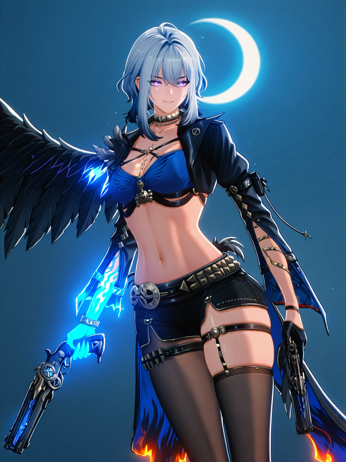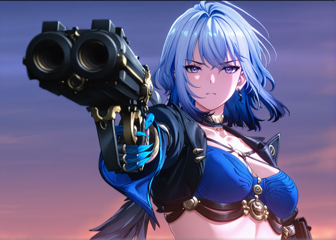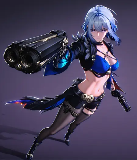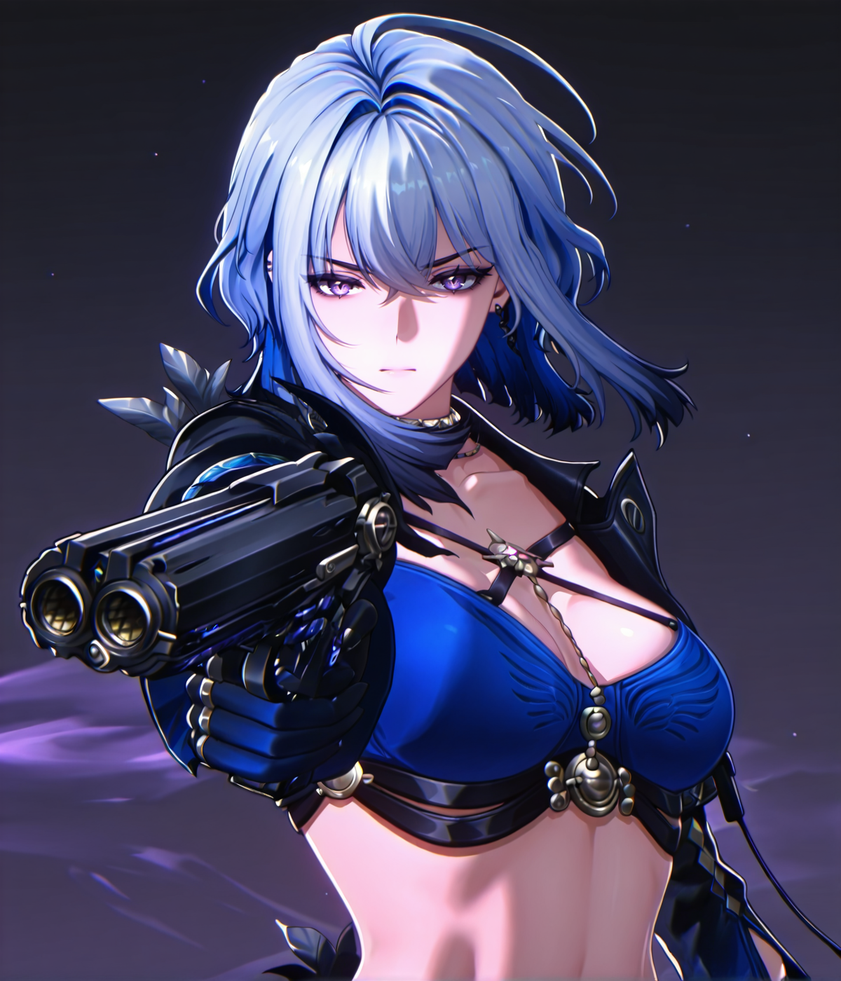 | 학습된 단어 | GalbrenaV2, 1girl, solo, grey hair, blue hair, multicolor hair,복사됨! navel, medium breasts, black gloves, black thighhighs, black footwear, short shorts, thigh strap, black choker, black shorts, chain, garter straps, claws, buckle, cropped jacket, single glove, belt buckle, black collar, asymmetrical clothes, blue bra, asymmetrical gloves, asymmetrical sleeves, single sleeve, uneven sleeves, cleavage, black jacket, black pants, asymmetrical legwear, brown thighhighs, uneven legwear,복사됨! wings, fiery wings, glowing wings, blue wings, energy wings,복사됨! gun, holding gun, weapon, holding weapon,복사됨! |