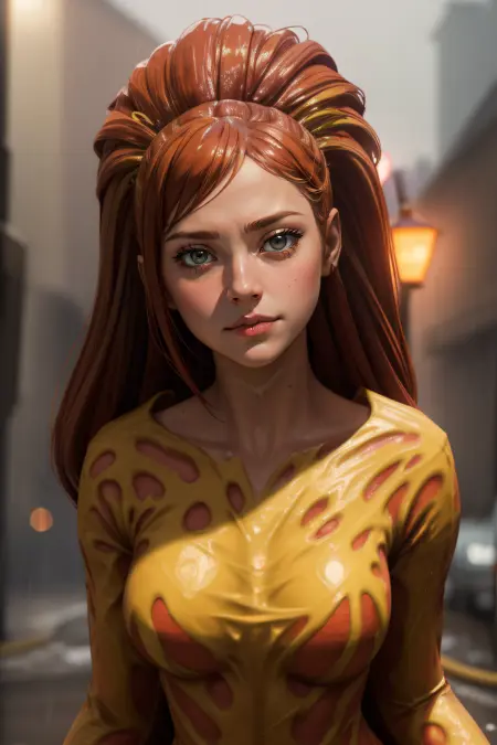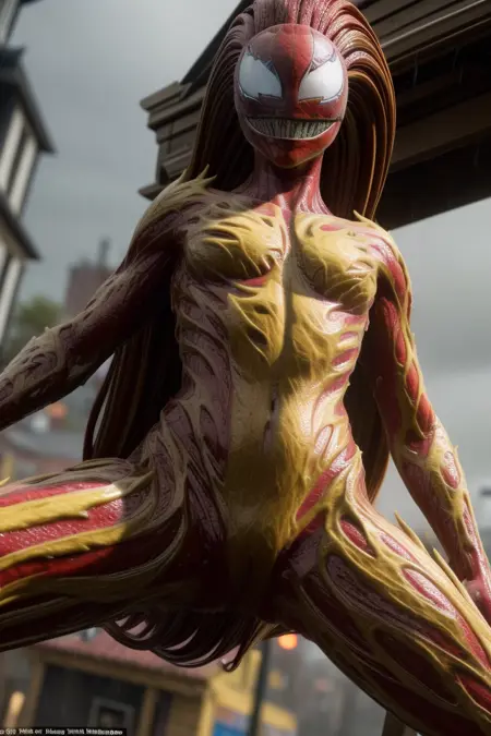 For accurate result, you can use prompt: scream_mj, female, red and yellow symbiote, long hair, venom, slime, sharp teeth, monster, lora:Scream\_MJ:0.7