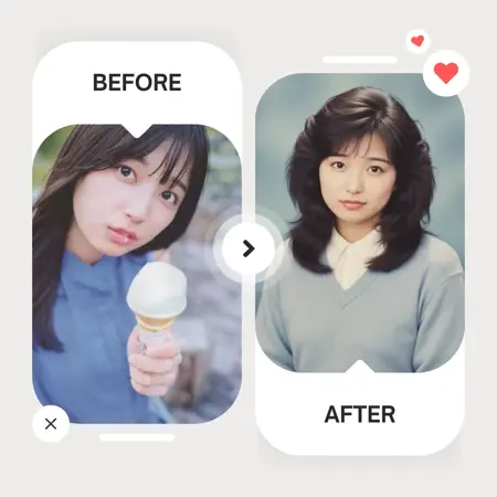 人物の画像を1980年代の年鑑スタイルに変換してください。以下のプロンプトを使用:Make the person in the photo look like a 1980s yearbook photo. Feel free to change the hairstyle and clothing.