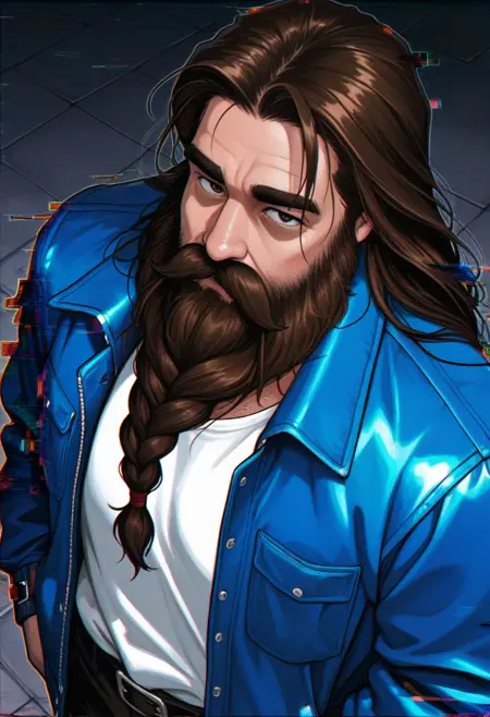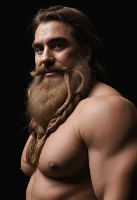stoickthevast, mature male, plump, brown hair, long hair, thick eyebrows, beard, long beard, braided beard, thick mustache,