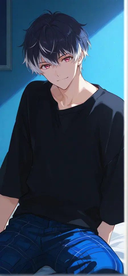 트리거 단어: sunohara momose, 다색 머리카락, 검은 머리카락, 흰 머리카락, 분홍 눈, 이색 머리카락, 줄무늬 머리카락