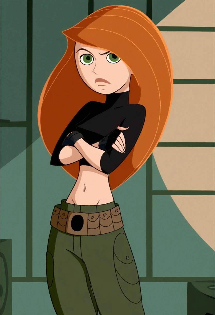 触发词:KimPos, 1girl, 绿色短上衣, 蓝色长裤,