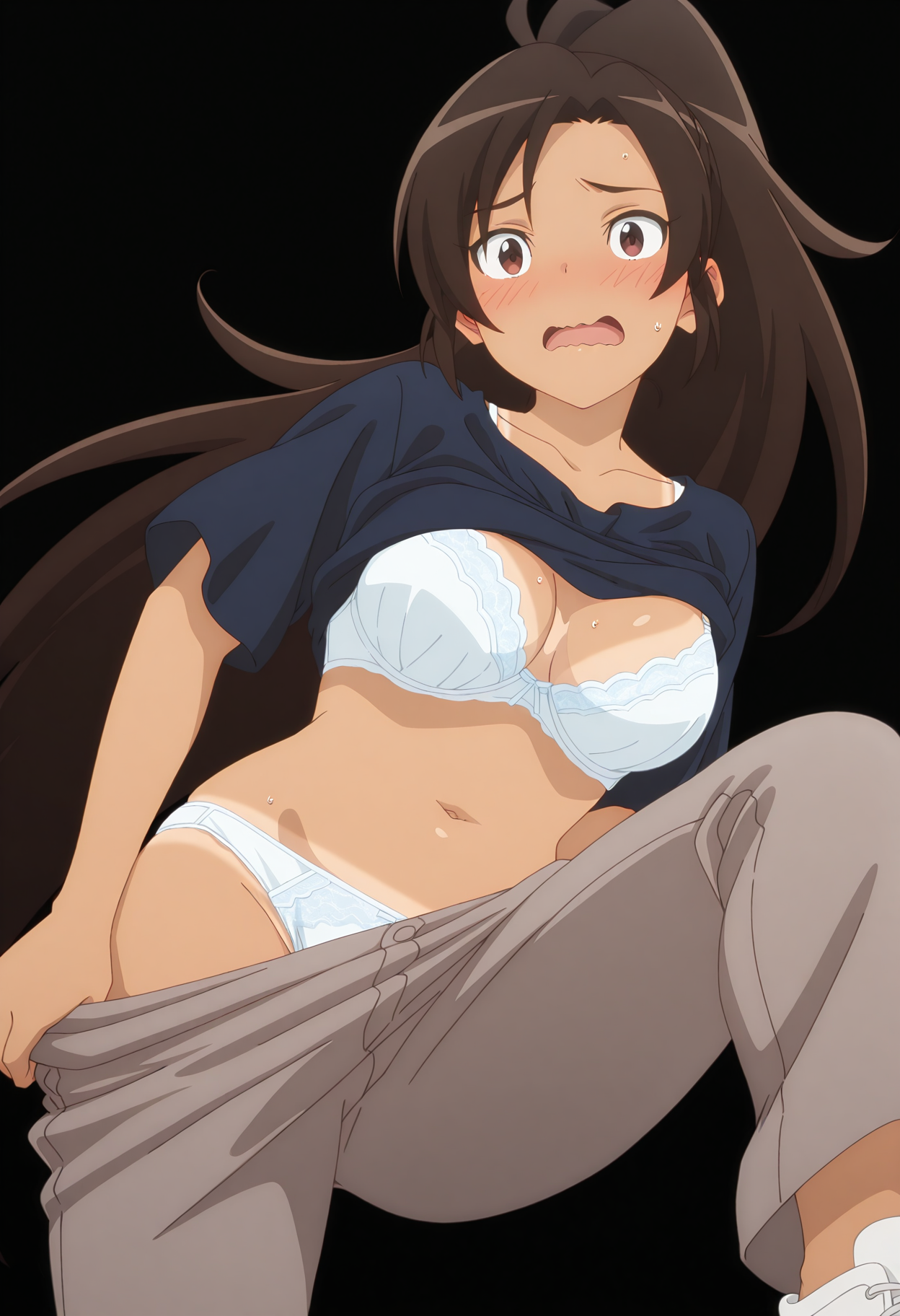 1girl, solo, amane ooguro, dark skin, dark-skinned female, very long hair, brown hair, ponytail, brown eyes, breasts