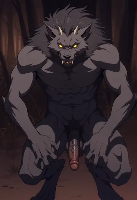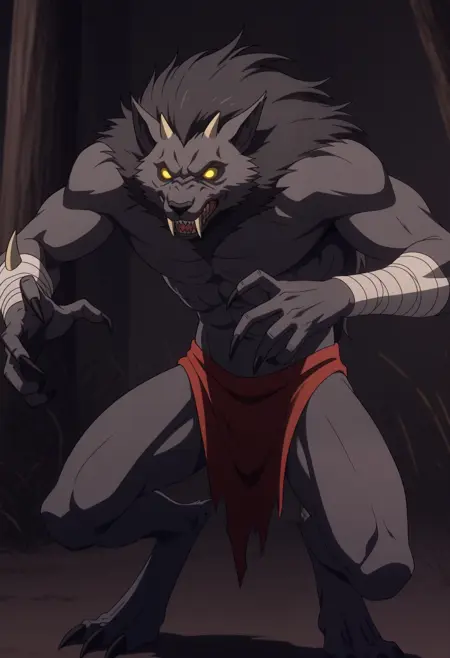 トリガーワード: lyc4nthr0p3c、werewolf、色付きの虹彩、黄色い目、