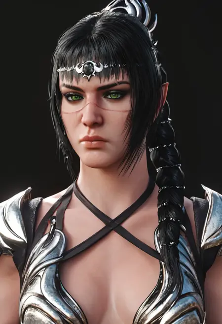 | 训练词汇 | dark armor with intricate silver and gold detailing已复制! green eyes, pointy ears, scar on face, circlet, multi-tied hair, diadem已复制! black hair, old hairstyle, blunt bangs, braided ponytail, multi-tied hair已复制! white hair, new hairstyle, braided ponytail, multi-tied hair已复制! Shadowheart armor, shoulder armor, pauldrons, chainmail, brown boots, brown pants已复制! Shadowheart lingerie outfit, underwear, purple bra, purple panties, bikini armor, highleg panties已复制! Selune dress, white dress, bracelet, armlet, greco-roman clothes已复制! |
