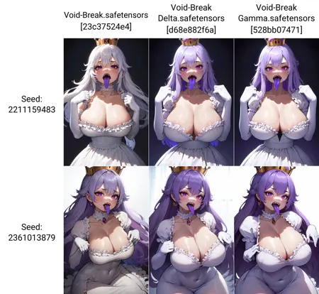 VoidBreak は、もはや存在しないモデル版である BreakDomain_M2150 と、いくつかの LoRA のほぼ完璧な融合から始まった、まるで魔術のような混合体です。これは、1つの LoRA を追加しただけの QBreak の進化版であり、こちらにはさらに 3~4 つの LoRA が追加されています。
