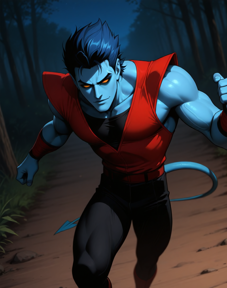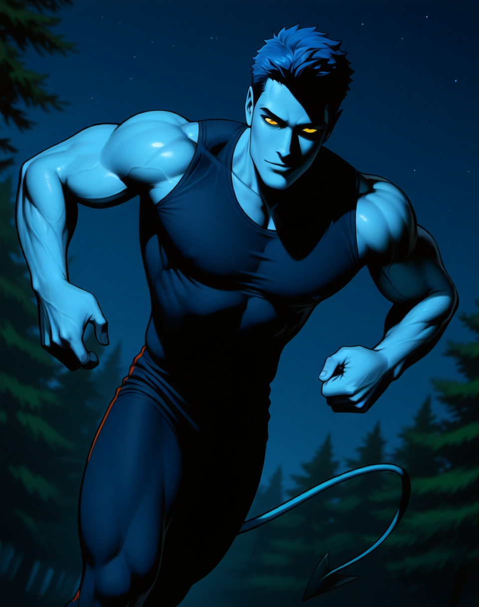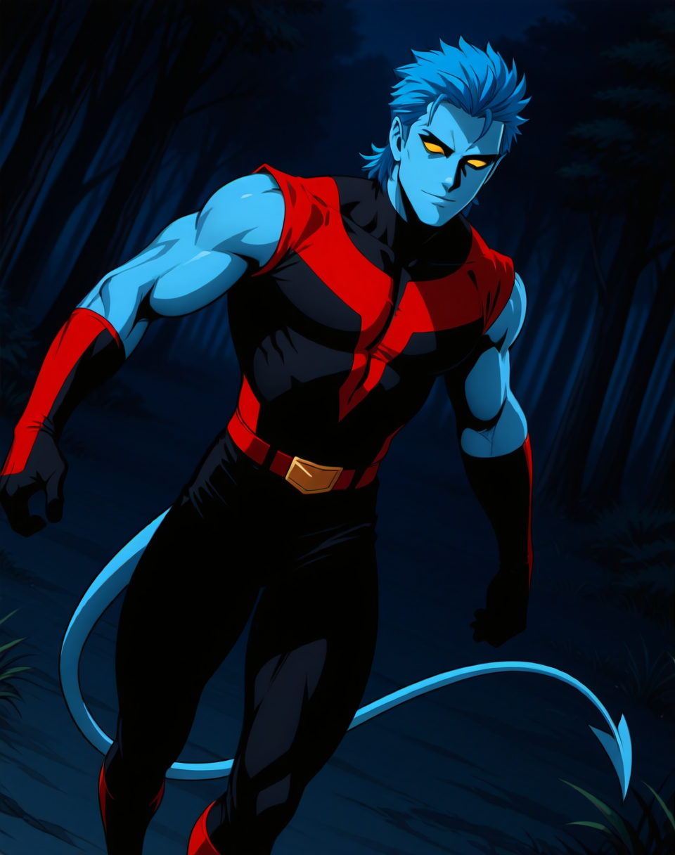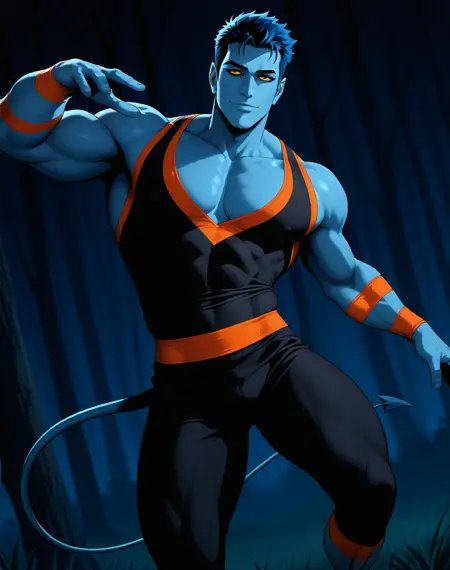 This is an Illustrious style lora for the character Nightcrawler from Marvel Comics. Nightcrawler is a mutant and a member of the XMen superhero group. His mother is the villianess Mystique, and his father is either a German count or a demon depending on which lore or recton comic like one is reading. He used to be in a gypsy circus before becoming a member of the XMen. He became a member of the gypsy circus not long after he was born due to the count freaking out that the wife of his gave birth to a blue demon looking creature, and Mystique abandoned the child while escaping thus leaving the child to be discovered by traveling gypsies.