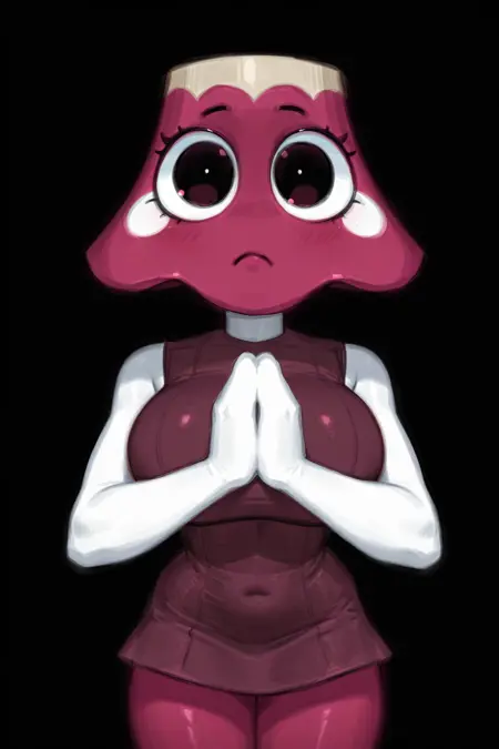 유용한 키워드: 검은 눈, br1ghtney_dw, 1girl, anthro, 오브젝트 머리, 램프셔드 머리, 흰색 팔, 소매 없는 드레스, 짧은 드레스, 분홍색 다리, 원형 손, 손가락 없음, 신발