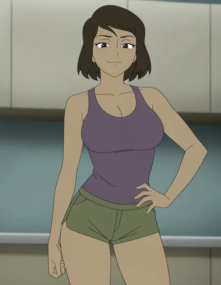 基础: bobby,棕色头发,短发,棕色眼睛,锁骨,深色皮肤,深色皮肤女性,大乳房,