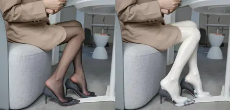 발과 하이힐이 두꺼운 우유로 덮여 있었다!
