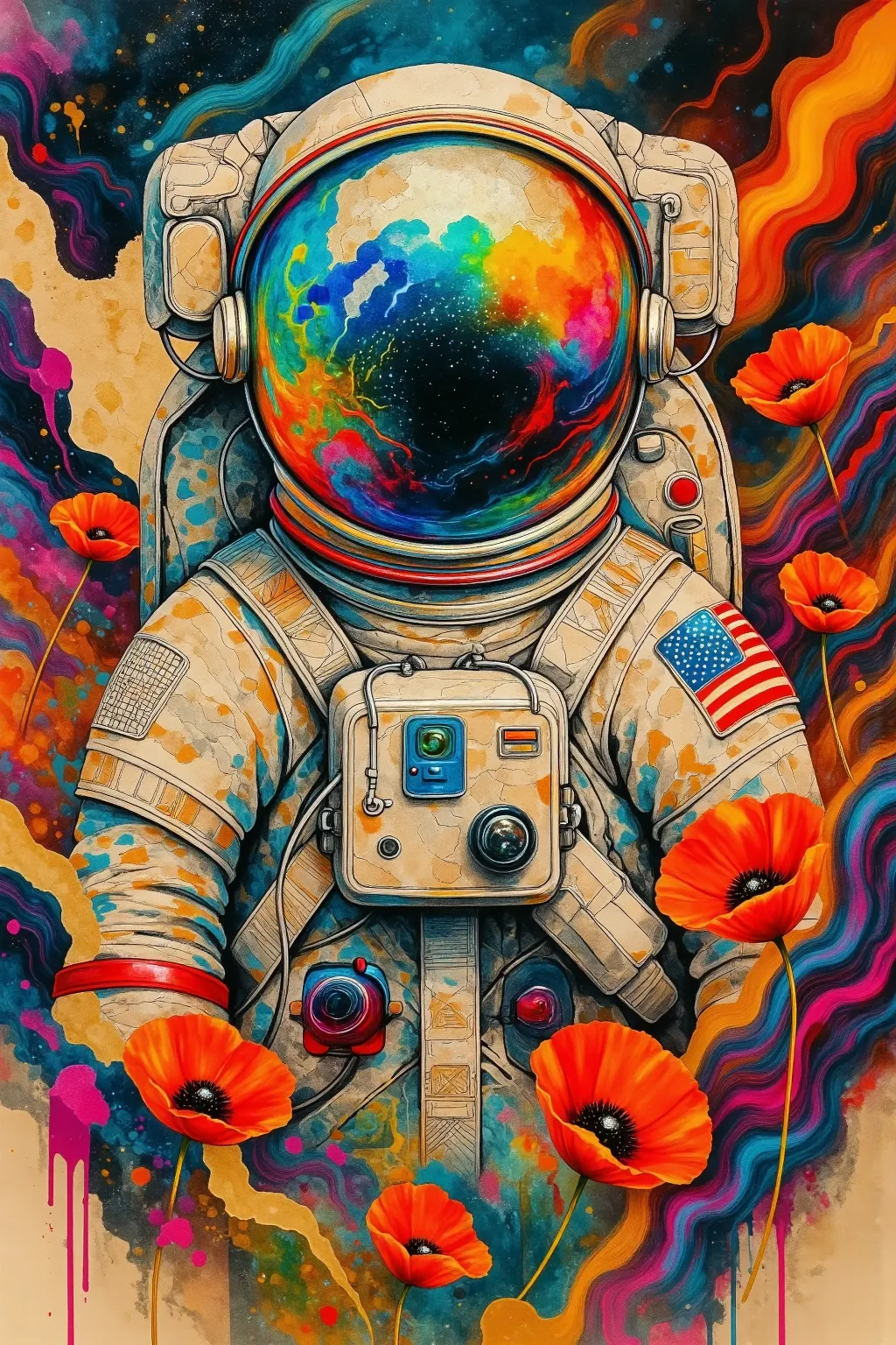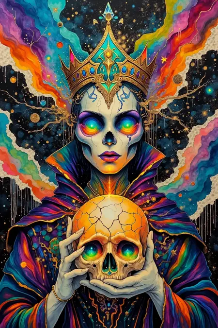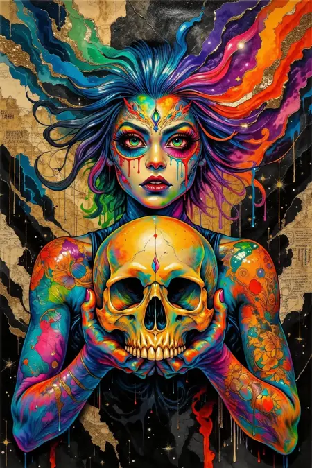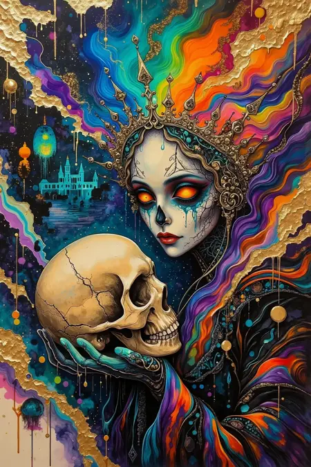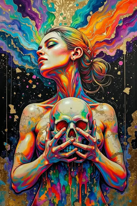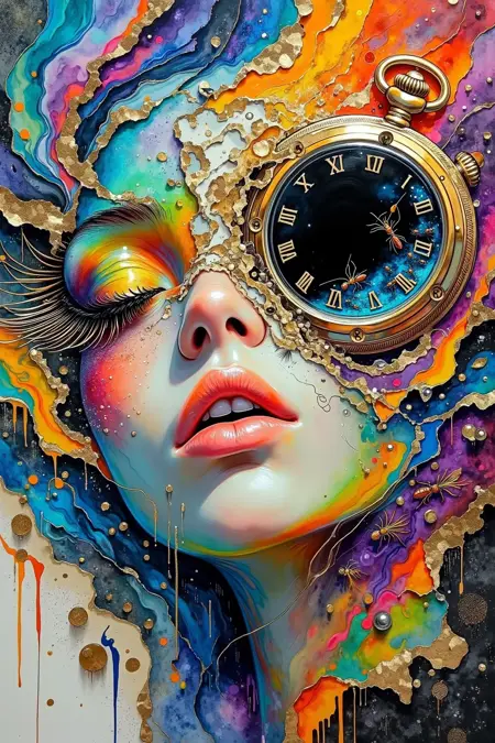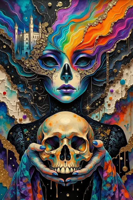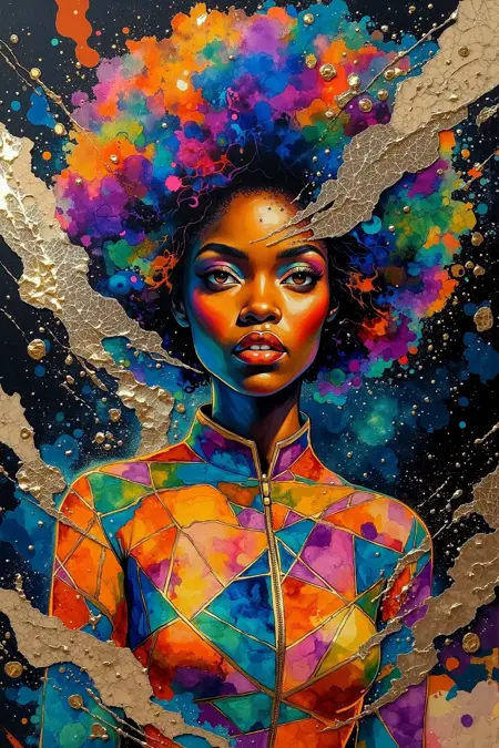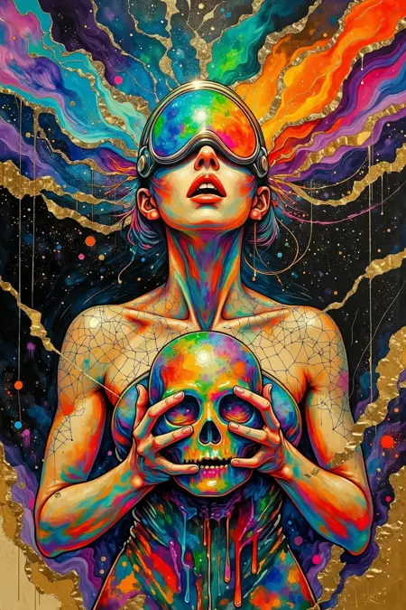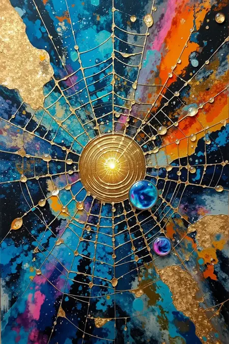 Keywords for Training: abstract art 🎨, surreal, kaleidoscopic 🔮, vibrant core, luminous gradient 🌈, watercolor, metallic void ⚫, mixed media, ink linework 🖋️, torn paper collage 📄, acrylic brushstrokes, spray paint splatter 🔫, encaustic wax 🕯️, charcoal smudge 🪵, pastel gradient 🌸, digital glitch 📱, marbled texture 🪨, resin drip 💧, metallic foil 👑, organized chaos 🌪️, depth of field 🔍, focal point ✨, perception, otherworldly 👽, futuristic 🚀.