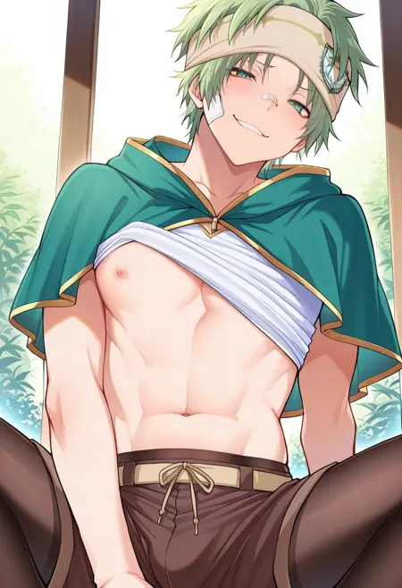Trigger words are: gashita,green hair,green eyes,bandaid on face,