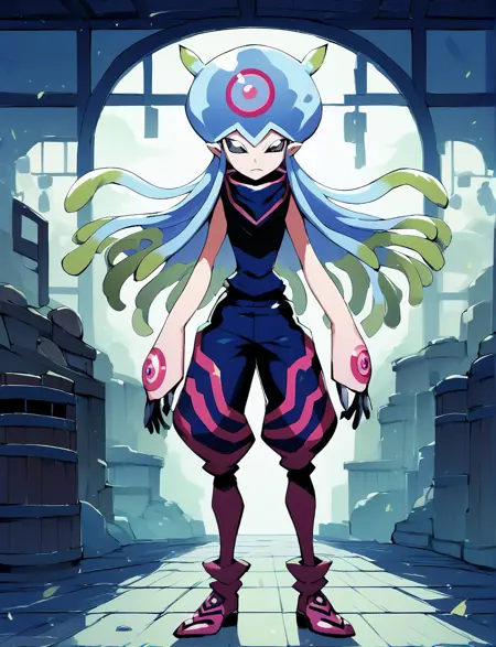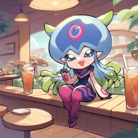 디지몬 젤리몬의 모델로, 메인 주인공 중 한 명의 파트너 디지몬으로 '디지몬 고스트 게임'에 등장하여 가장 잘 알려져 있다. 이 모델은 캐릭터에 충실하면서도 생성 가능한 요소에 대해 상대적으로 유연해야 한다. 다만, V1 버전은 'chibi' 키워드를 사용하지 않는 한 애니메이션 스타일을 처리하는 데 일부 어려움을 겪는다. 각 버전의 기능에 대한 설명은 버전 세부 정보를 확인하십시오.