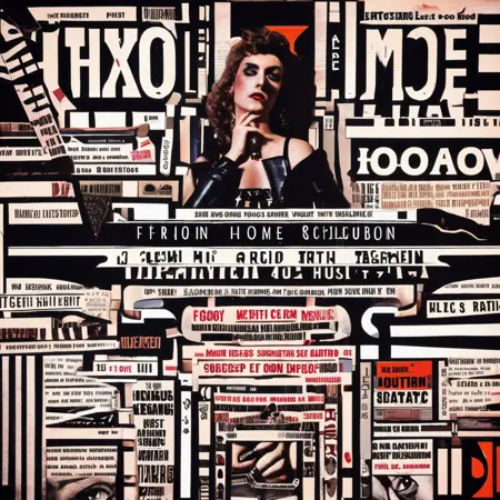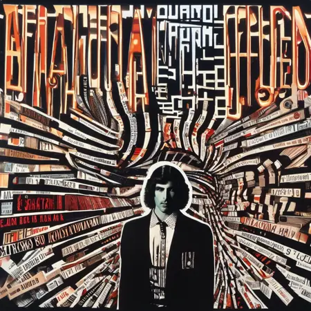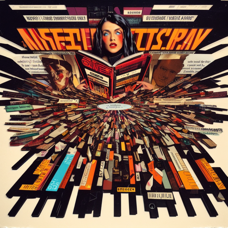 提示:"lora:DjNastyMagic\_Collage:0.7 DJNM, djnastymagic, DjNastyMagic, 前沿艺术拼贴,文字字母的螺旋,高级时尚,阴森,赛博朋克,魔法师施法,巧妙组合找到的照片、设计师杂志剪报和80年代恐怖VHS封面,风格借鉴John Stezaker和Jesse Treece、Richard Hamilton,3D光学幻觉,多种风格融合为一个统一的艺术作品"
