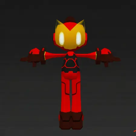 태그: no11, 솔로, 전신, 1소년, 로봇, 안드로이드, 인간 없음, 색상이 있는 피부, 빛나는 눈, 빨간 바디수트, 노란 마스크, 갈색 장갑, 갈색 부츠, 서 있는 자세, 팔을 뻗은 자세, 단순한 배경, 회색 배경, 서명, 3D, 치비