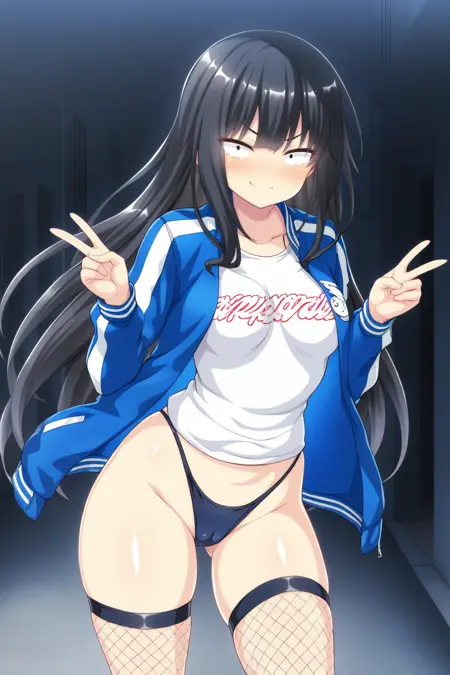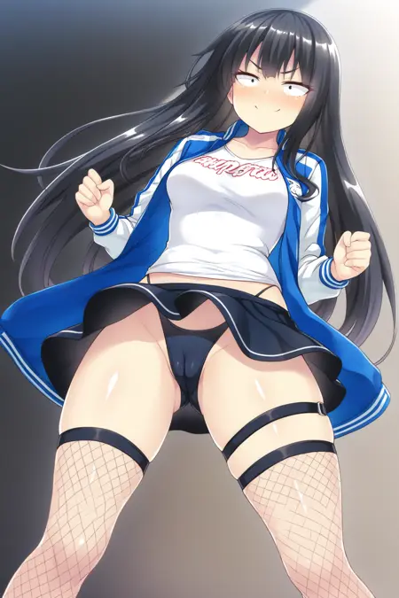 Prompt: Marccco, 点状眼睛, 黑发, 长发, 直发, 黑眼, 收缩的瞳孔, 长发, 黑发, 夹克,