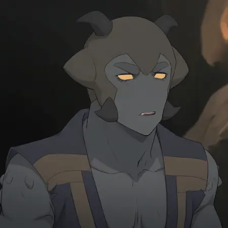 랙, 외계인, 회색 피부, 작은 검은 뿔, 노란 눈, 바위 같은 피부, 동공 없음,