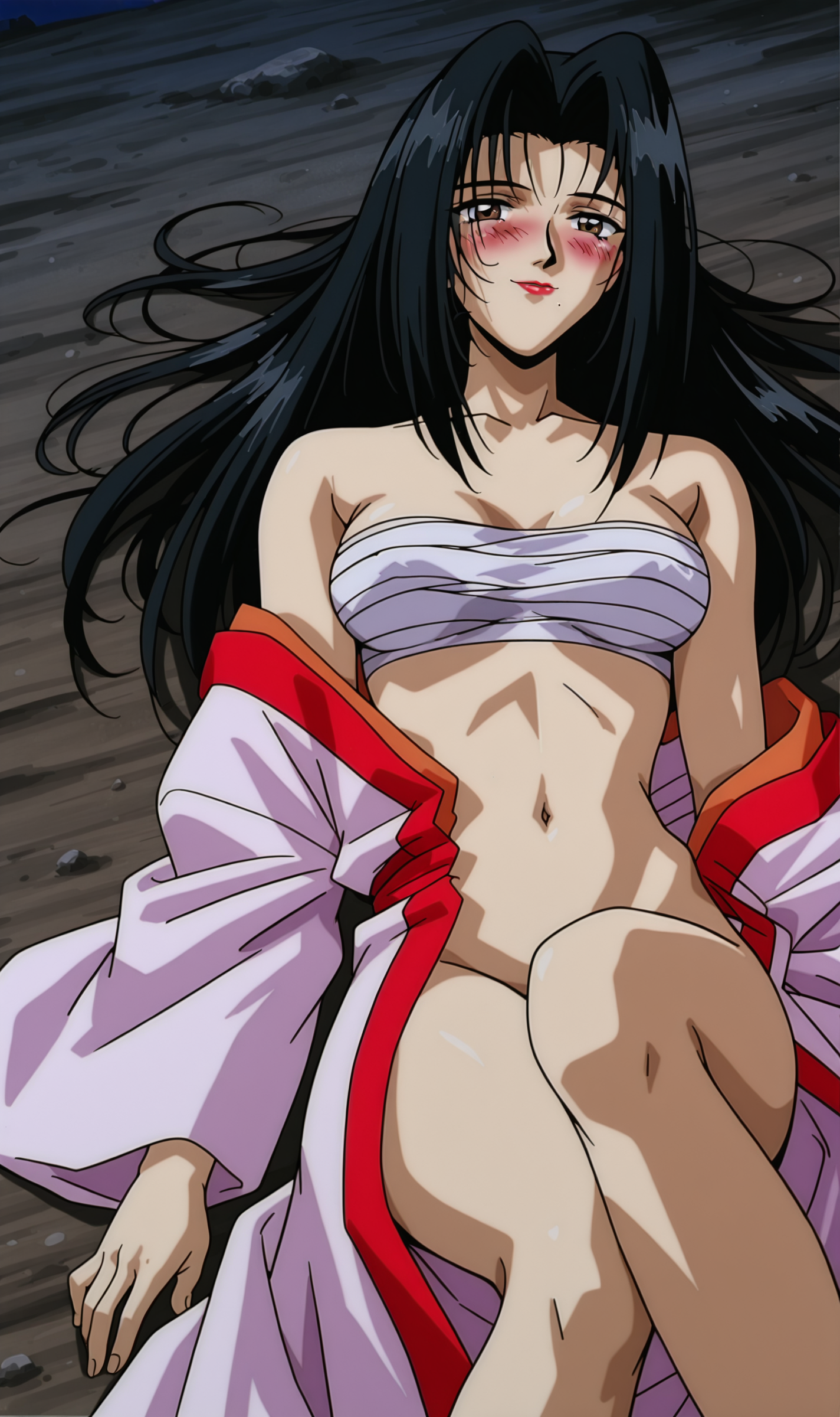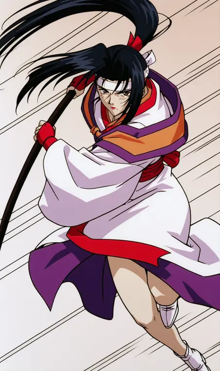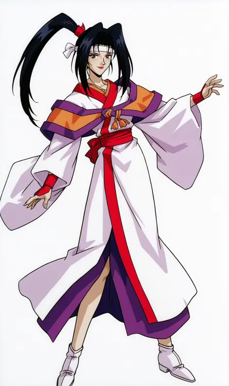 복장 1- '단발머리, 흰색 헤드밴드, 머리 리본, 기모노, 손가락 없는 장갑, 흰 신발'*상체 초상화용, 눈 위에 빨간색이 나타날 수 있으므로, 음성 프롬프트에 아이섀도우를 추가하세요* _목재 검은 선택 사항이지만 항상 정확하지는 않습니다_*