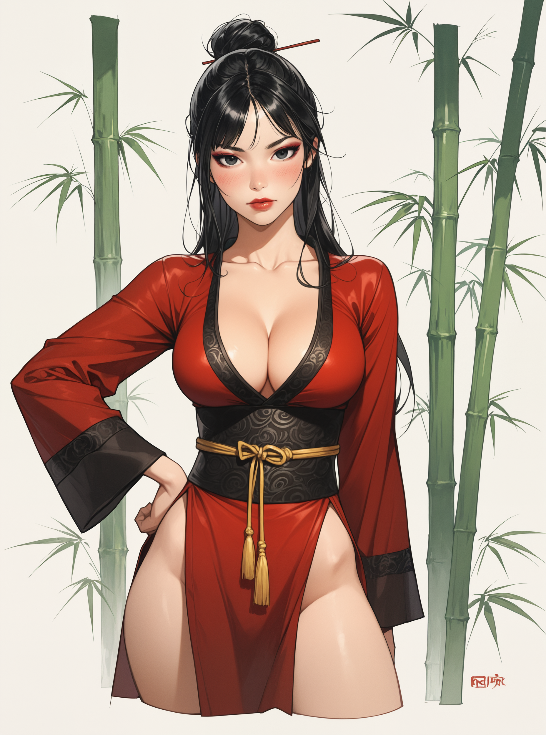 Ideal for creating stylized pin-up illustrations with a rich, hand-crafted look. Works best with forward-facing, half-body compositions.