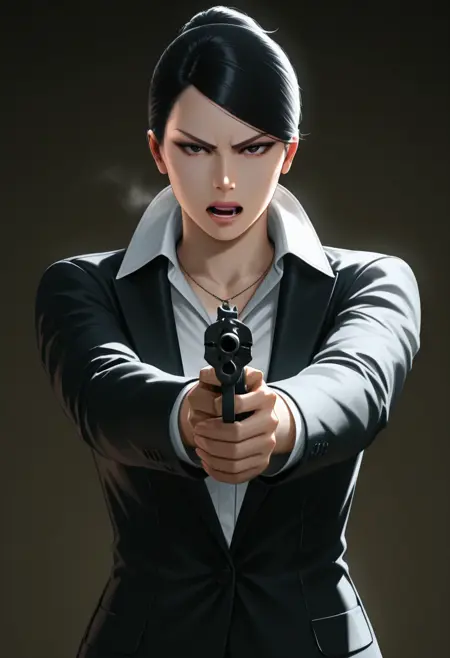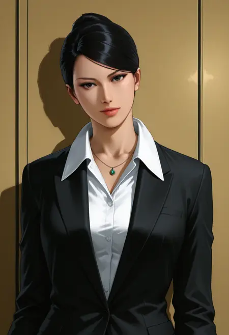 《如龙2》中的早川薫;使用其在《如龙 极2》中的版本进行训练,数据来源于游戏截图及Blender中从多个角度制作的3D模型。