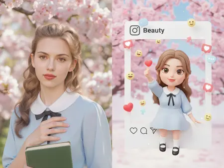 此工作流基于您提供的参考角色图像,生成可爱的、Q版风格的3D社交媒体图片。