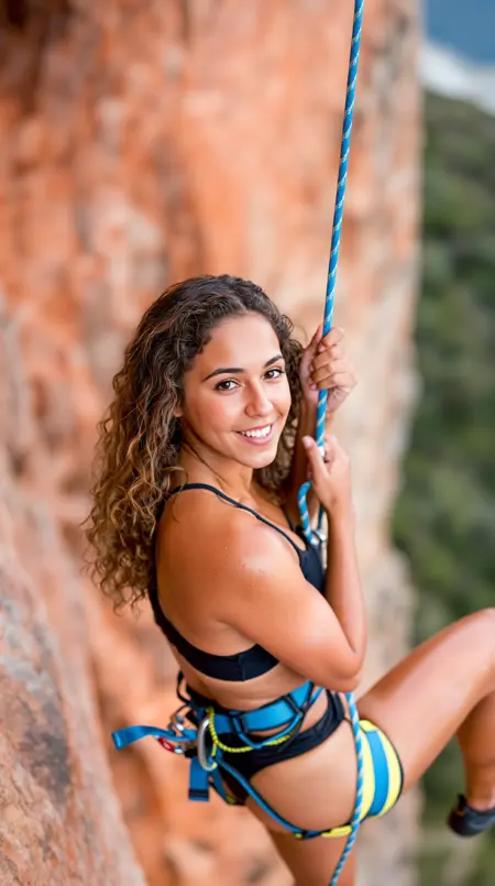 1nst4p1c 長い黒髪をポニーテールに結んだブラジルのモレナ女性が、赤いスポーツブラとタイトなグレイレギンスを着て、現代的なジム内でミラー自撮りのポーズを取ります。片手にはスマホをわずかに傾けて持ち、ウエストを引き締め、楽しげな笑みで唇をわずかに開いています。明るいジムの天井照明の下、 tanされた肌に自然なハイライトが現れ、腕にはわずかに汗の質感があります。背景にはぼやけたダンベルと有酸素運動機器が見えます。照明はシャープでリアルで、体のラインを強調しています。全体的な美学はフィットネスインフルエンサーレベルの官能的で、ソーシャルメディア向けです。画像は縦向きに完璧に構成され、浅い被写界深度で彼女の反射に焦点を当て、ジムは柔らかく見えています。