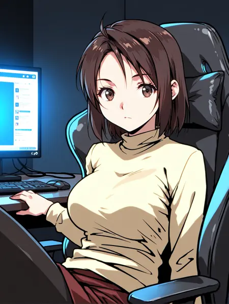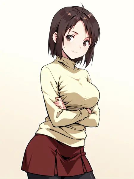触发词 ・f_kanrinin,棕色头发,棕色眼睛,