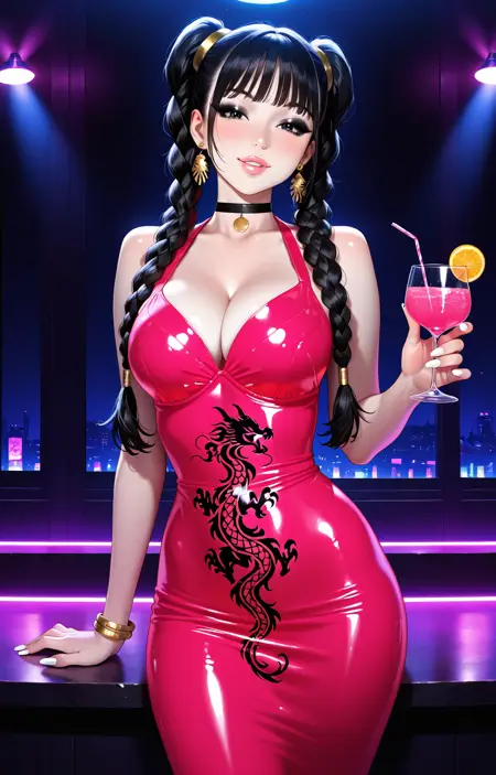 drag0npr1ntdr3ss,(color1) dragon print, shiny clothes, (color2) latex dress,spaghetti straps,