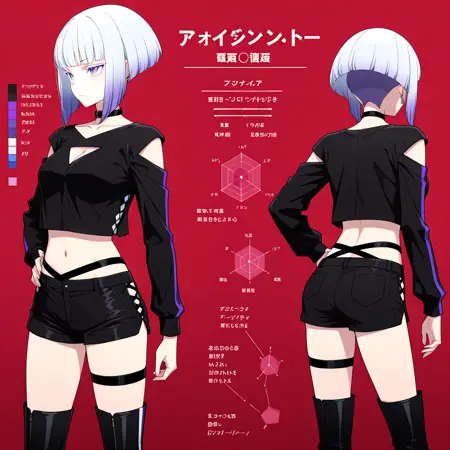 | 训练词汇 | Tamikonz, purple eyes, white eyelashes, colored eyelashes, bob cut, short hair, blunt bangs, multicolored hair, silver hair, purple hair, gradient hair, medium breasts, collarbone, long sleeves, black crop top, black choker, shoulder cutout, single vertical stripe, cleavage cutout, midriff, harness:1.6, thigh strap, navel, waist strap, hip vent, black shorts, black thigh boots, earrings已复制! Tamicasual, purple eyes, white eyelashes, colored eyelashes, bob cut, short hair, blunt bangs, multicolored hair, silver hair, purple hair, gradient hair, medium breasts, black choker, fur-trimmed jacket, black jacket, open jacket, long sleeves, black dress, short dress, white belt, skull print, thigh strap, black boots,已复制! Tamischool, purple eyes, eye reflection, white eyelashes, colored eyelashes, bob cut, short hair, blunt bangs, multicolored hair, silver hair, purple hair, gradient hair, medium breasts, black neck ribbon, buttons, long sleeves, black cropped jacket, white shirt, collared shirt, black pleated skirt, long skirt, black socks, black loafers,已复制! , playing instrument, bass guitar, holding bass guitar,已复制! |
