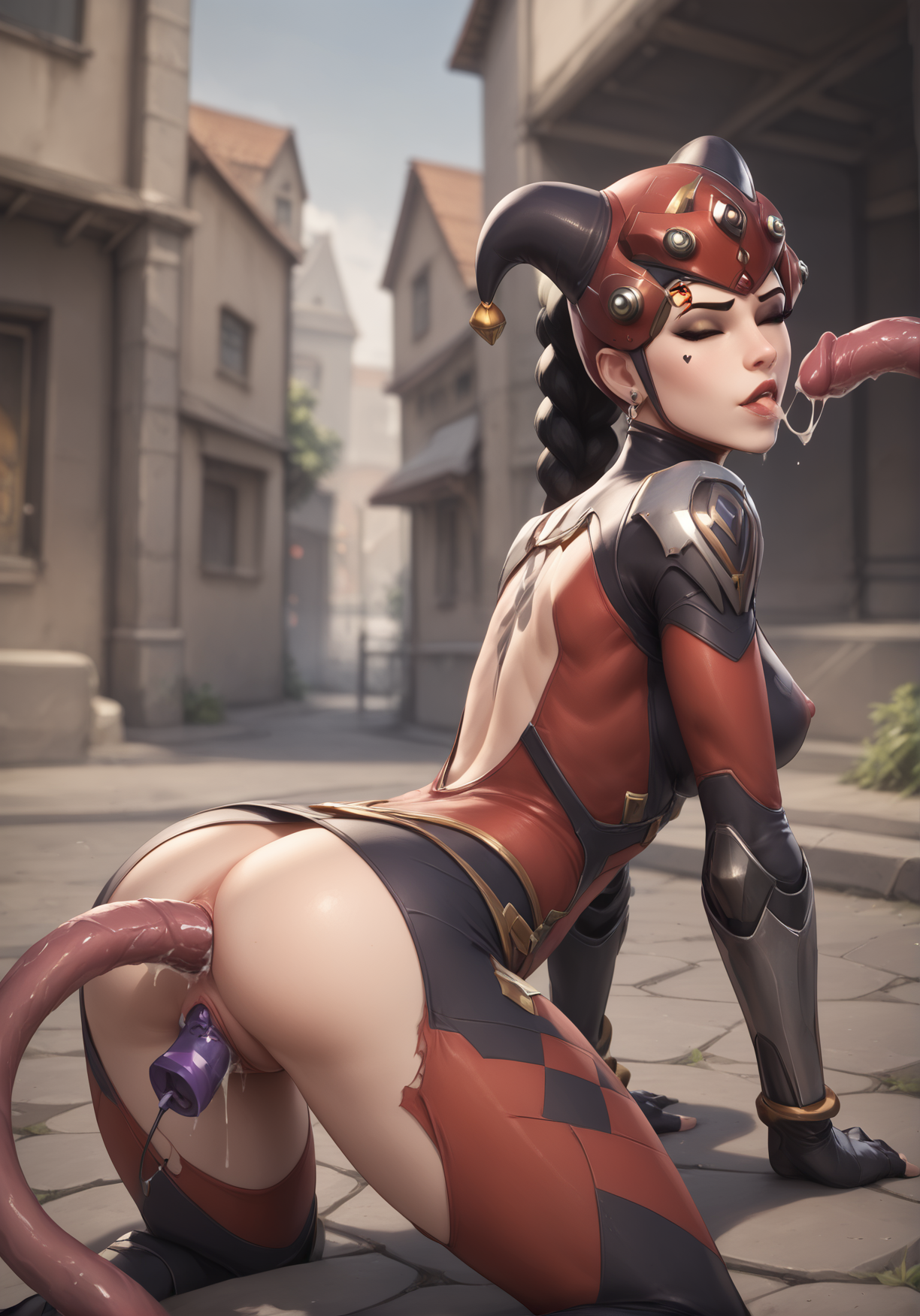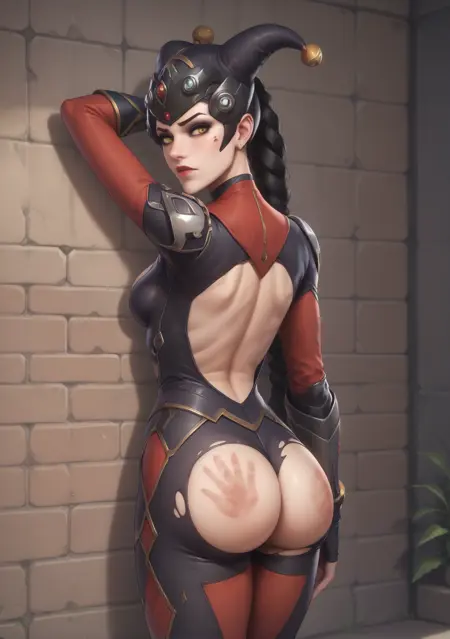 推奨プロンプト: score_9, score_8_up, score_8_up, (solo:1.4), 1girl, lora:Widowmaker_Harlequin:0.5, harlequin, long braid, solo, long black hair, red bodysuit, yellow eyes, small hips, white skin